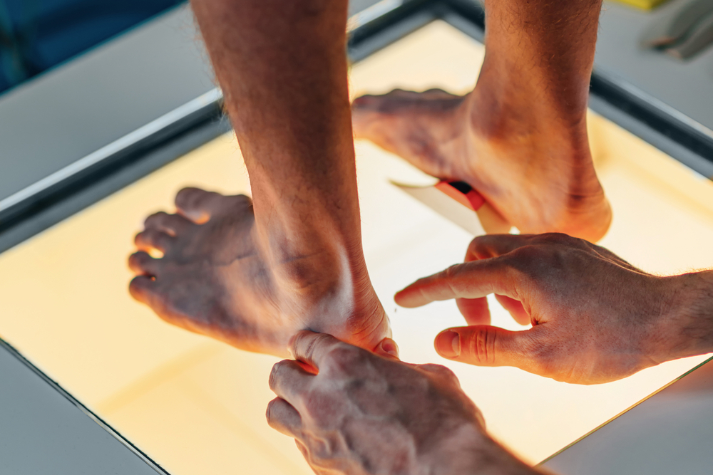 Var olan ayak deformitenize özel durumlarda(düz taban,çukur taban),basış bozukluğunuzda, yaptığınız spor aktivitesine göre hatta ayak konforuna özen gösteren herkesin yaptırması gereken kişiye özel tabanliklar vardır.Danisanin merkezimize geldiğinde dinamik ve statik olucak şekilde ayak tabanı rotasyonları ve yürüme periyodunun tamamı analiz edilip basma kusuru raporlanip bilgisayara aktarılır.Cıkan sonuca göre danışanın tabanlığı dizayn edilir.